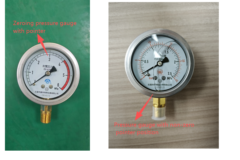 | 3 | فرق الضغط بين داخل وخارج الحاوية | يظهر مؤشر مقياس الضغط إزاحة غير طبيعية، مما يؤدي إلى إشارة غير دقيقة. تصبح هذه المشكلة أكثر وضوحًا مع انخفاض نطاق مقياس الضغط. نظرًا لعدم فهم المستخدمين، فإن احتمالية حدوث هذه المشكلة أكبر. بعد اكتمال مقياس الضغط وتركيب سدادة الزيت، يتم تشكيل مساحة مغلقة داخل المقياس. عند هذه النقطة، يكون الضغط الجوي داخل التجويف متسقًا مع الضغط الجوي الخارجي. عندما يتغير الضغط الجوي الخارجي، يتولد فرق الضغط الداخلي، والضغط | بشكل عام، عند حدوث هذه المشكلة، فهذا يشير إلى أن إزاحة مؤشر الصفر صغيرة نسبيًا. | ||||||